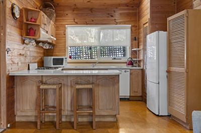 Surrounded by sundecks, the inviting interior has the rich essence of a mountain lodge that will tug at the heartstrings featuring high formed timber-lined ceilings and timber-lined walls, a crackling open fire and tranquil garden outlooks, while scope exists to add a second future storey to capture beautiful views over peninsula hinterland to Western Port Bay.