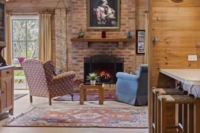 Down a hall, dado wall panelling carries the country character into all three bedrooms including the main bedroom with an ensuite, its own access to a covered deck and a discreet pull-down ladder into extensive attic storage space set in the high pitched roof.