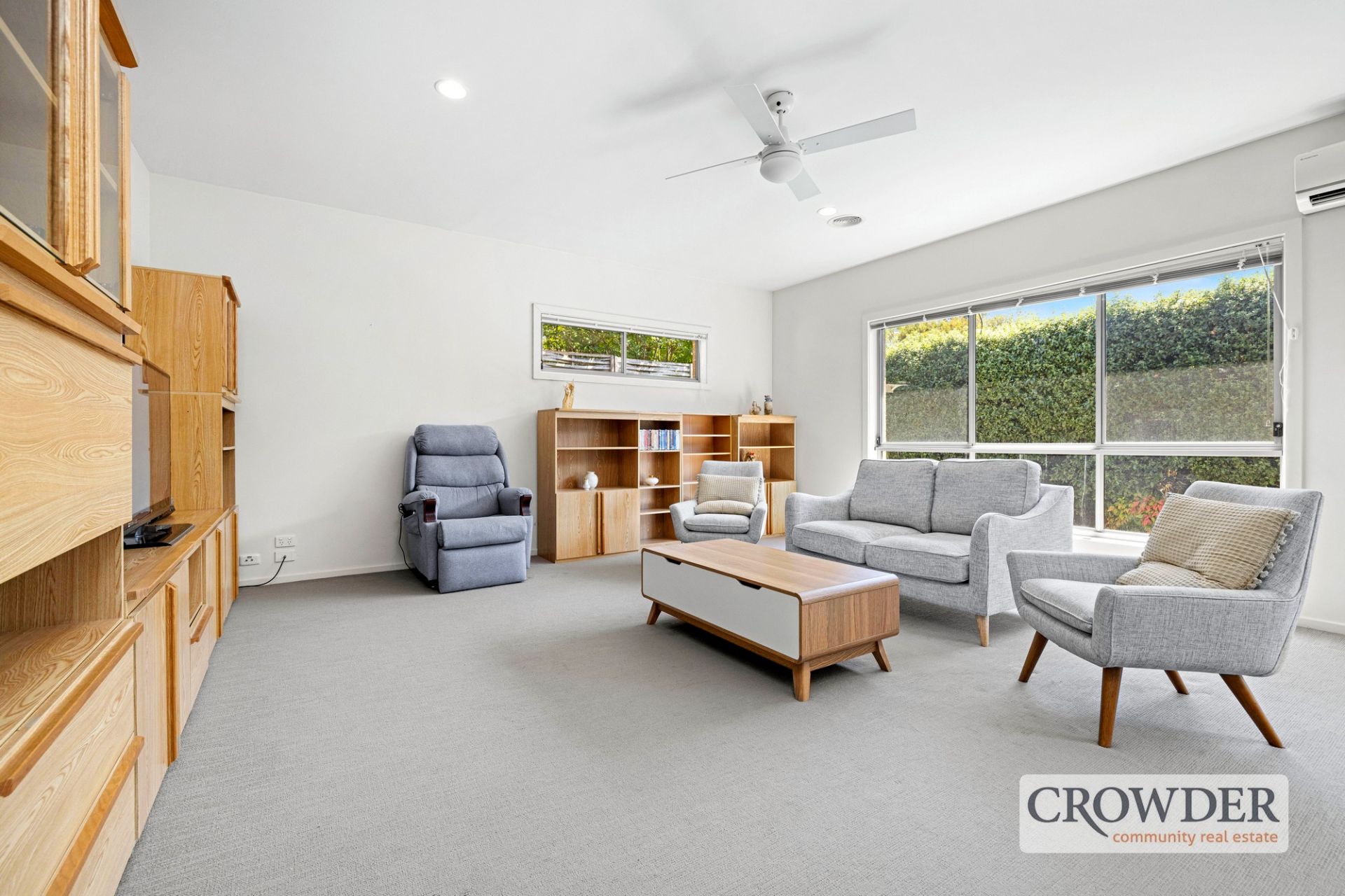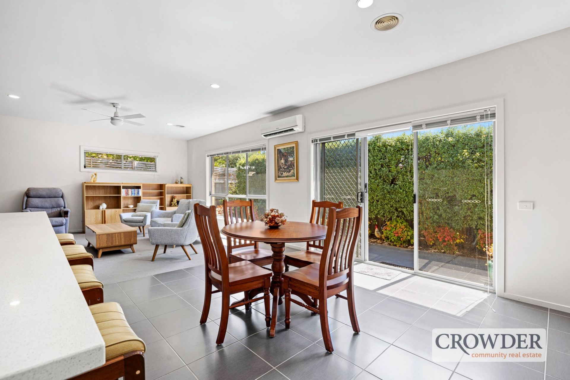 A low-maintenance backyard provides a private retreat, complete with a paved alfresco area, perfect for relaxed outdoor living. A remote double garage with internal access ensures convenience and security.