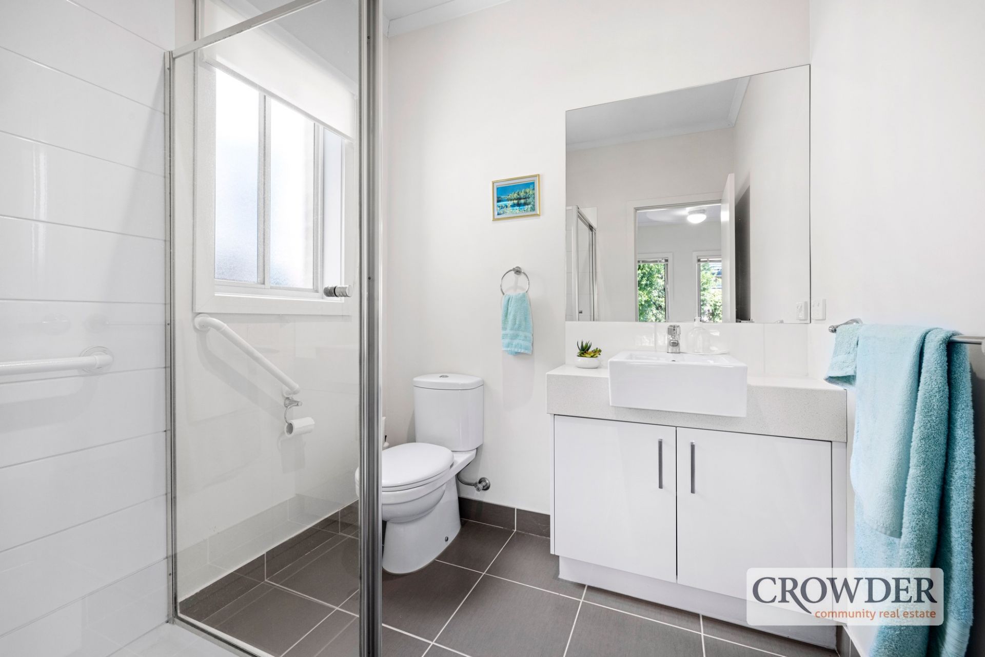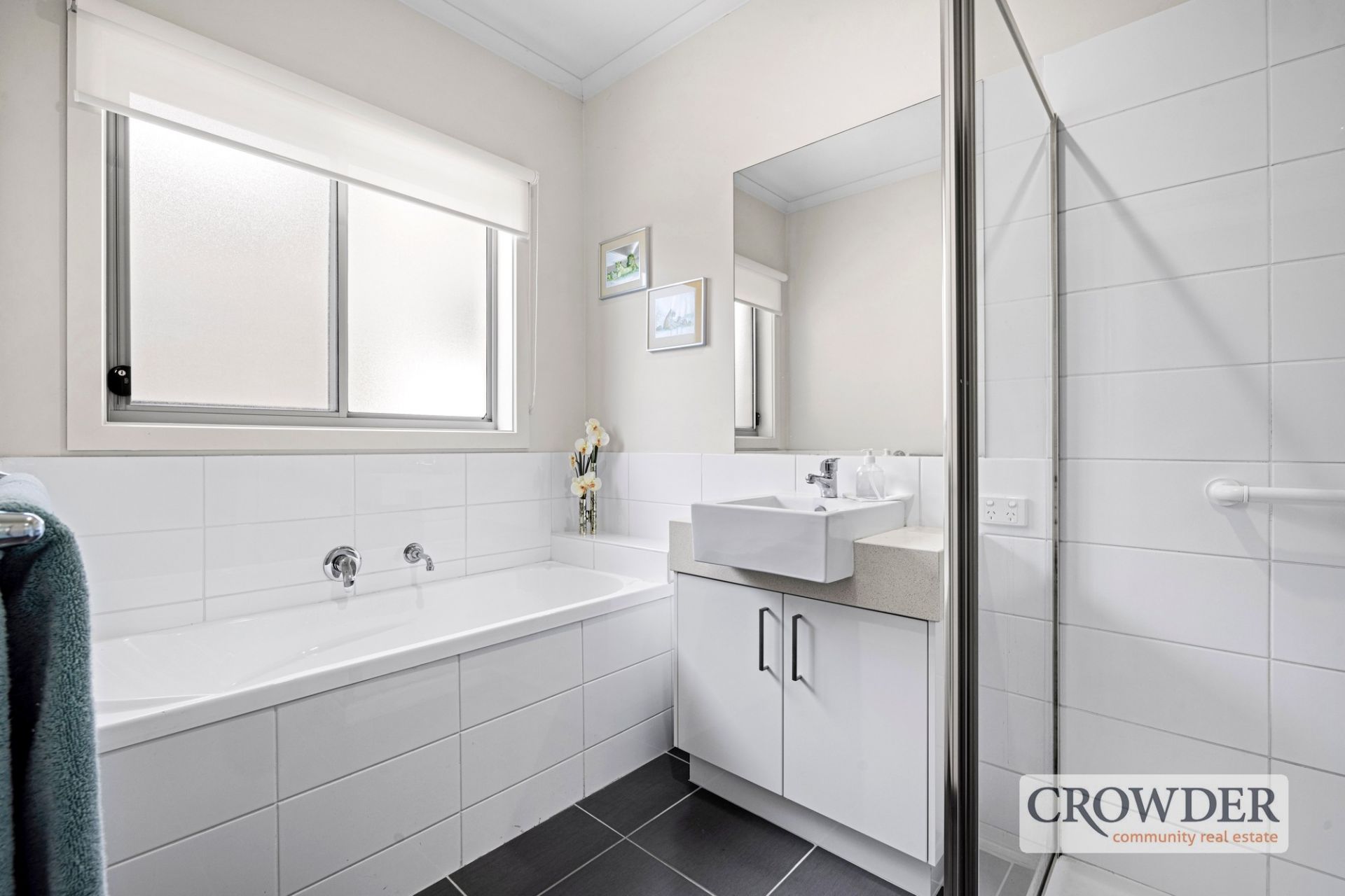 Beyond the secure rear position, a welcoming entry hall introduces the thoughtfully designed layout. The master suite boasts a generous walk-in robe and private ensuite, while two additional bedrooms feature built-in robes and share a sleek family bathroom with a standalone bath, shower, and separate WC.