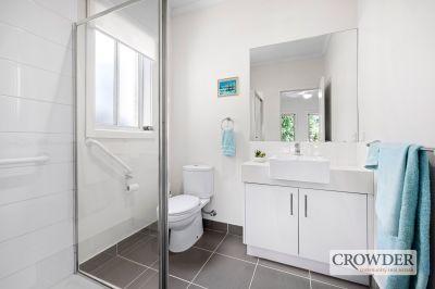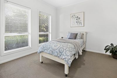 Beyond the secure rear position, a welcoming entry hall introduces the thoughtfully designed layout. The master suite boasts a generous walk-in robe and private ensuite, while two additional bedrooms feature built-in robes and share a sleek family bathroom with a standalone bath, shower, and separate WC.