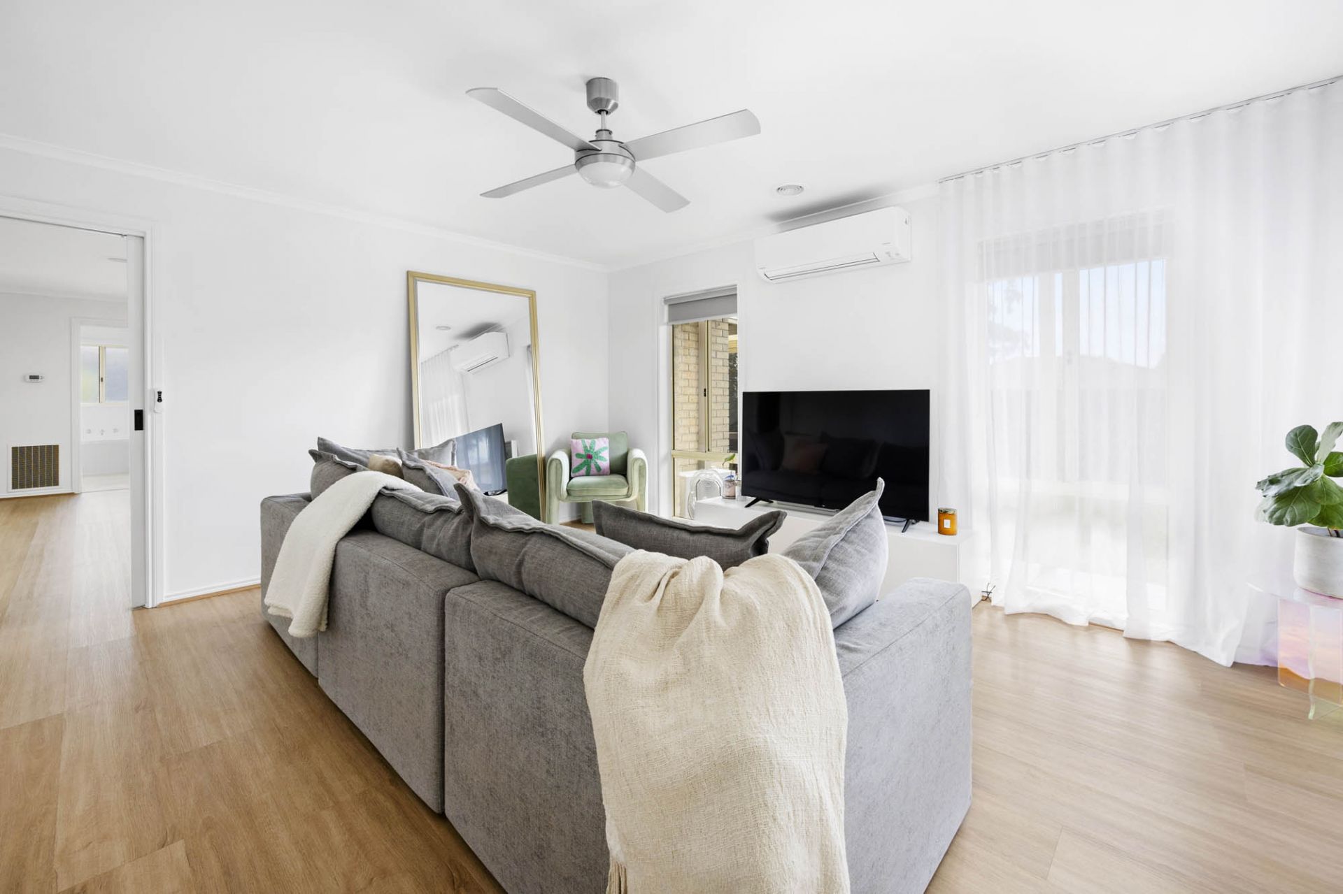 The parent's lounge sits opposite the main bedroom with ensuite and walk-in robe, while 2 other bedrooms at the other end of the home share a central bathroom with shower and bath.