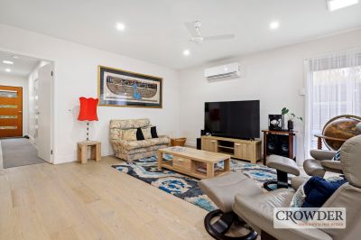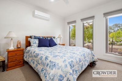 With street frontage, no body corporate fees and set next to a reserve, the dual living zone home is wonderfully private behind a remote security gate with ample space for families or downsizers and featuring easy-care gardens including a range of citrus trees.