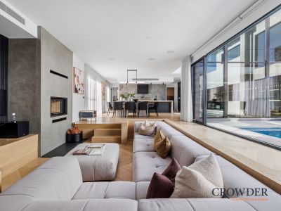 Barely a year old and wrapped around an inground pool and spa with a first-class alfresco entertaining area and multiple living areas including a sumptuous sunken lounge, the home is a testament to refined living by the sea offering a generous sense of scale, bold design yet overwhelmingly relaxed in spirit.