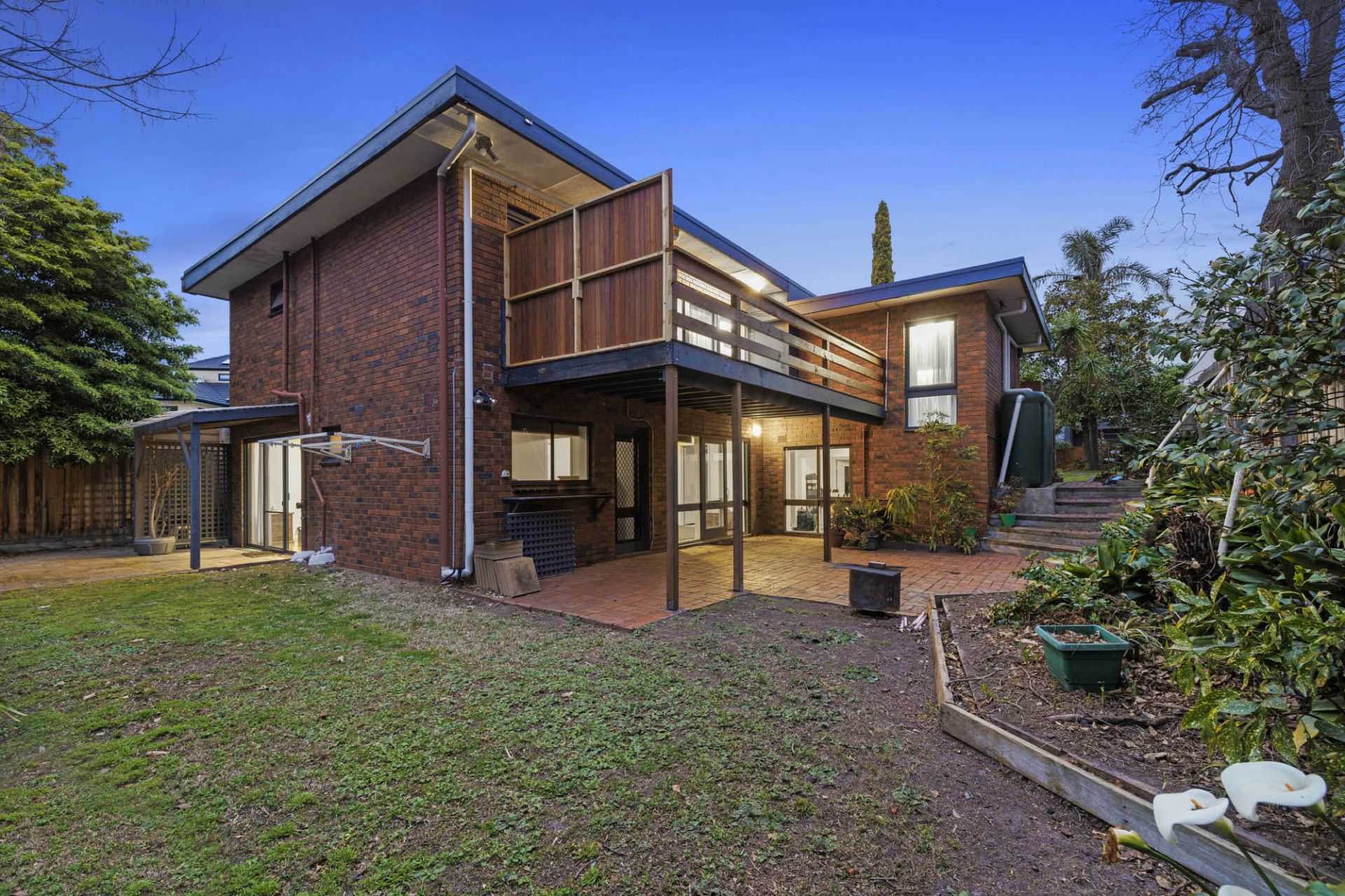 At the heart of the home on the upper level a solid timber kitchen with stainless steel appliances overlooks a meals area that opens to a sunny balcony, the main bedroom features a walk-in robe and ensuite and 2 other bedrooms share the main bathroom featuring a spa bath and separate shower.