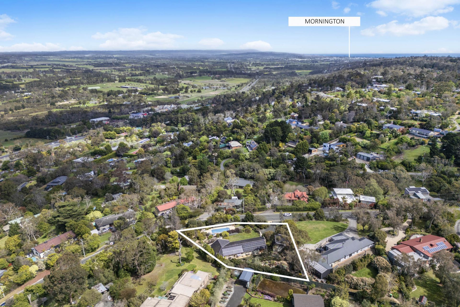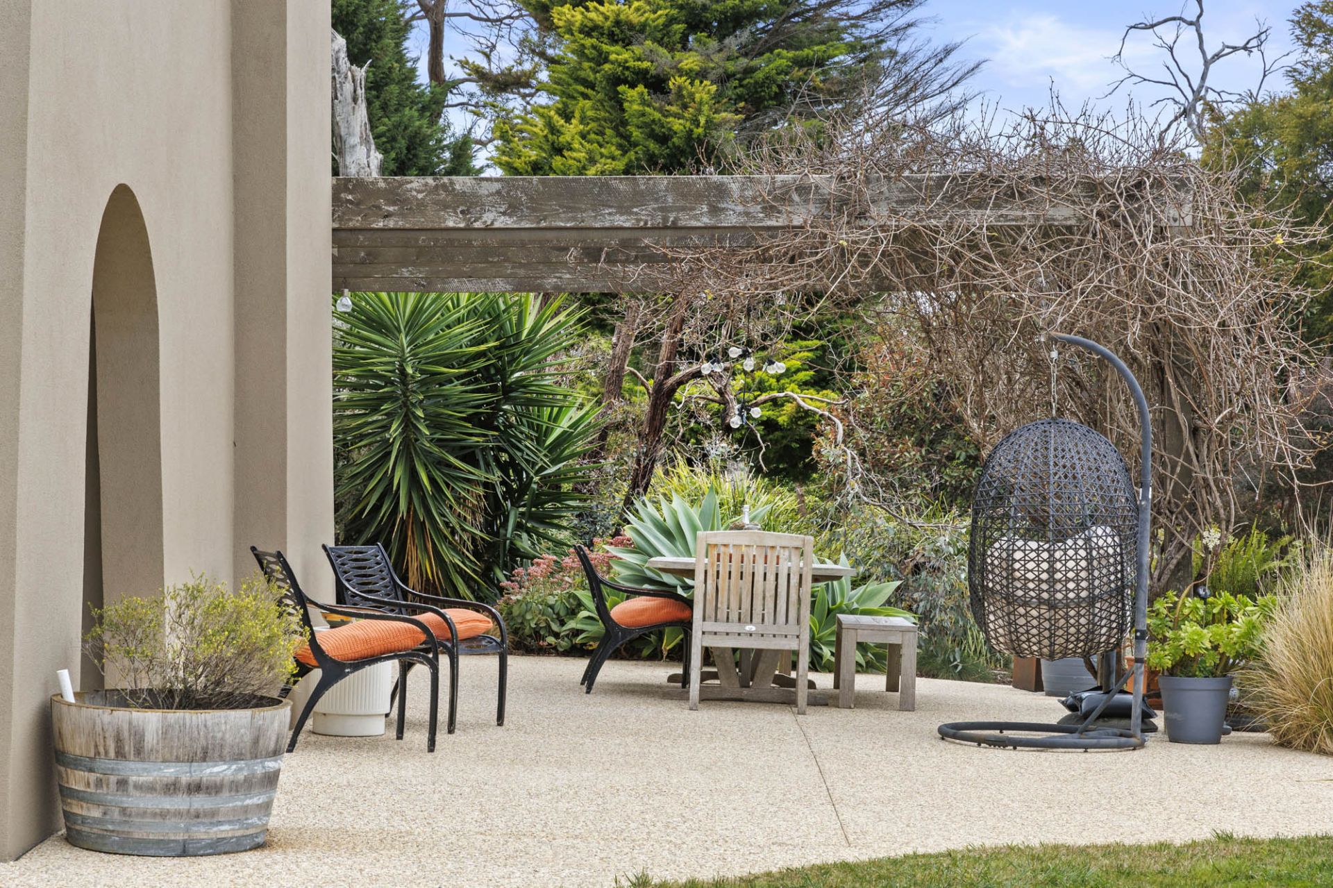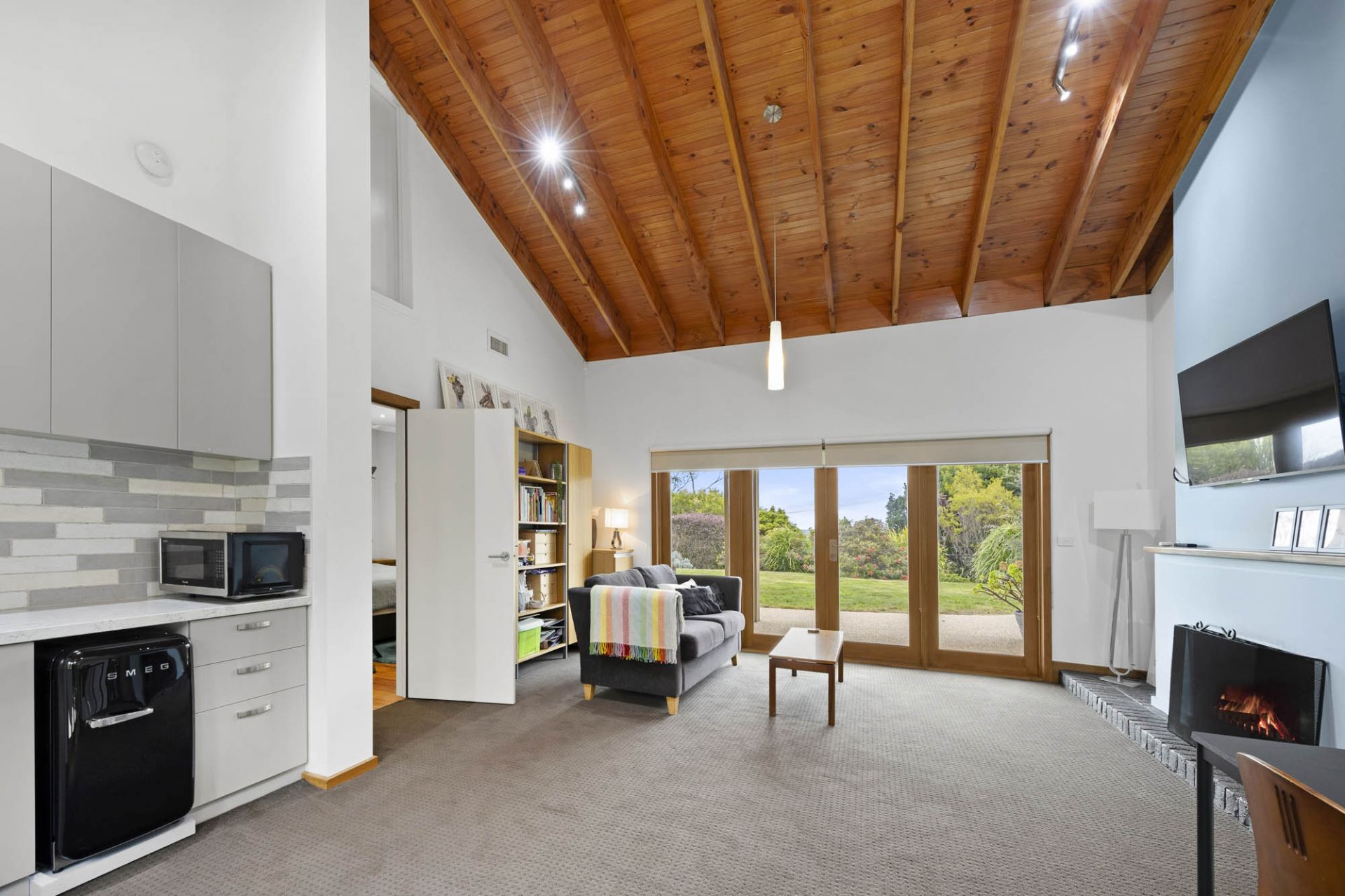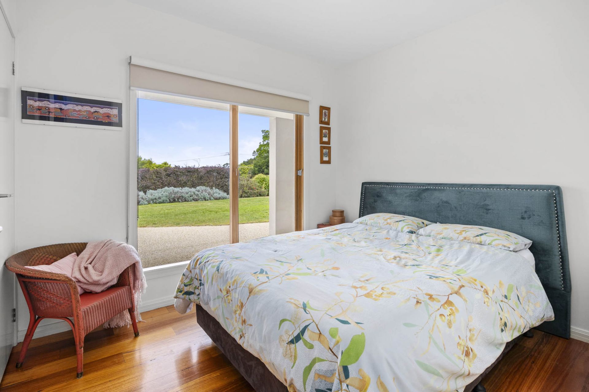 Rear gardens have steps leading up to a quaint firepit zone set at the highest point of the property where you can indulge in an evening red and enjoy a sensational panoramic vista over the peninsula's Moorooduc Plains that turn into a dazzling light show as day turn to dusk.