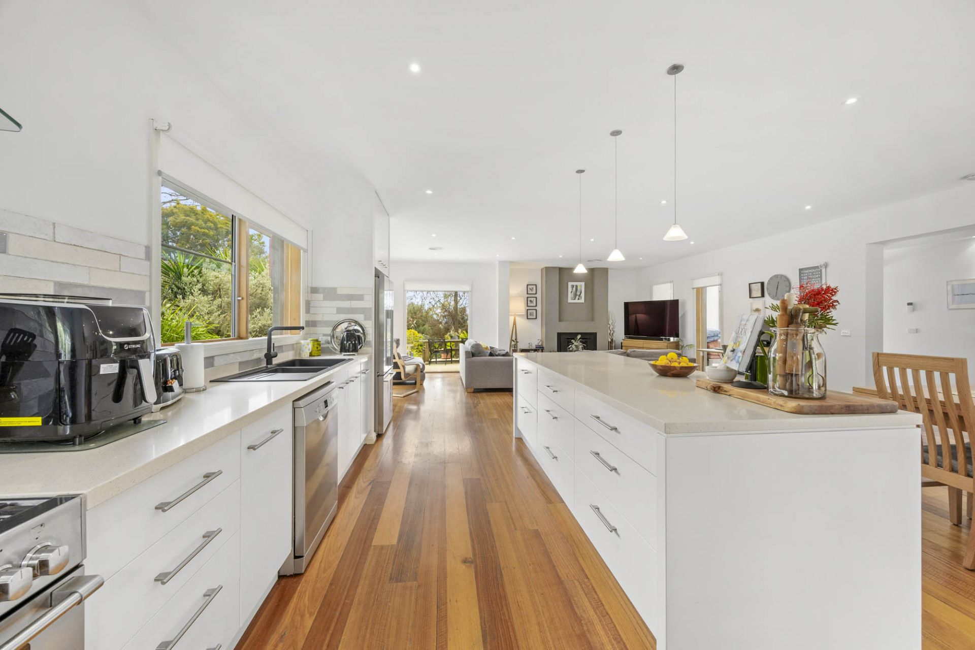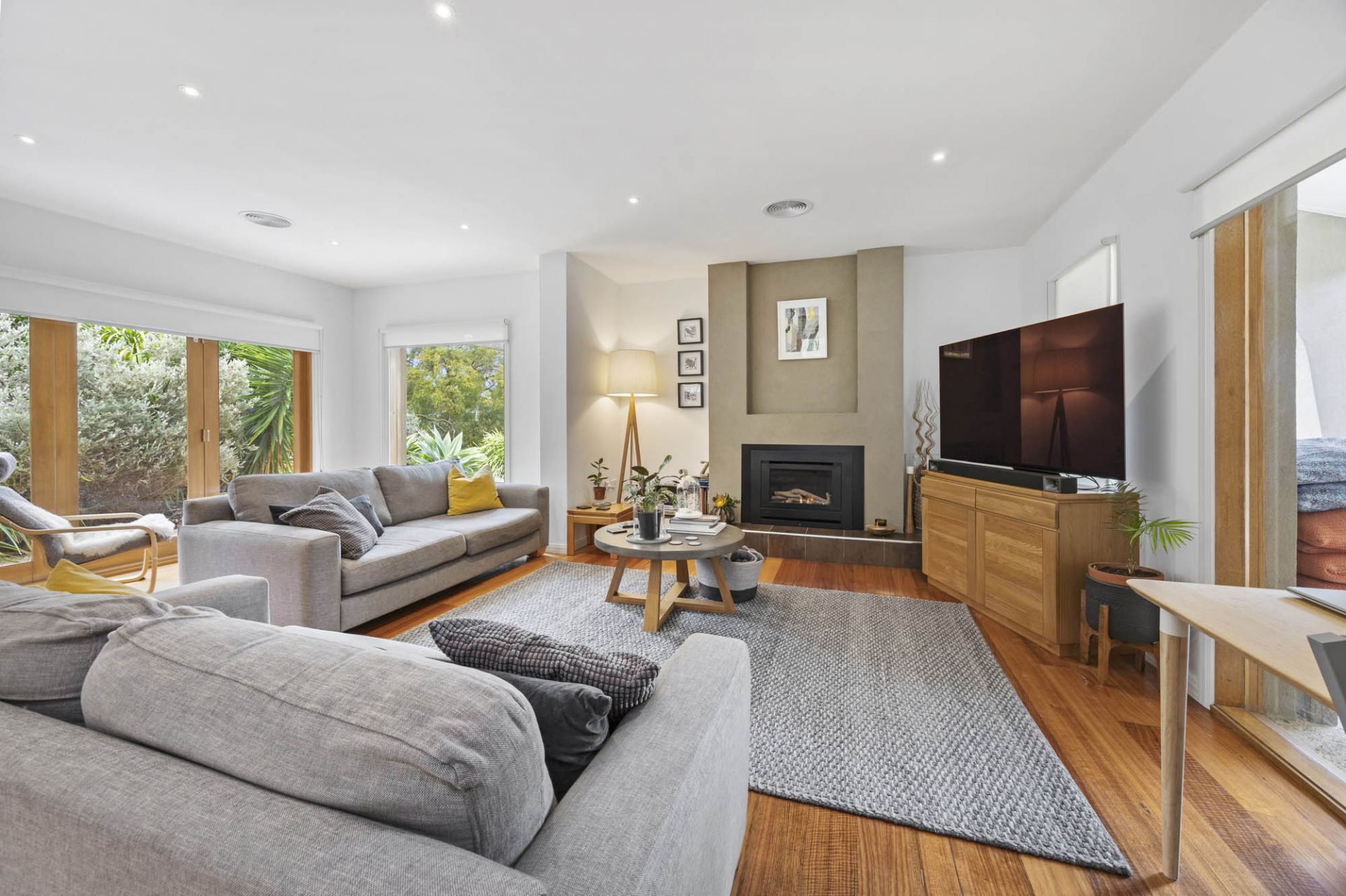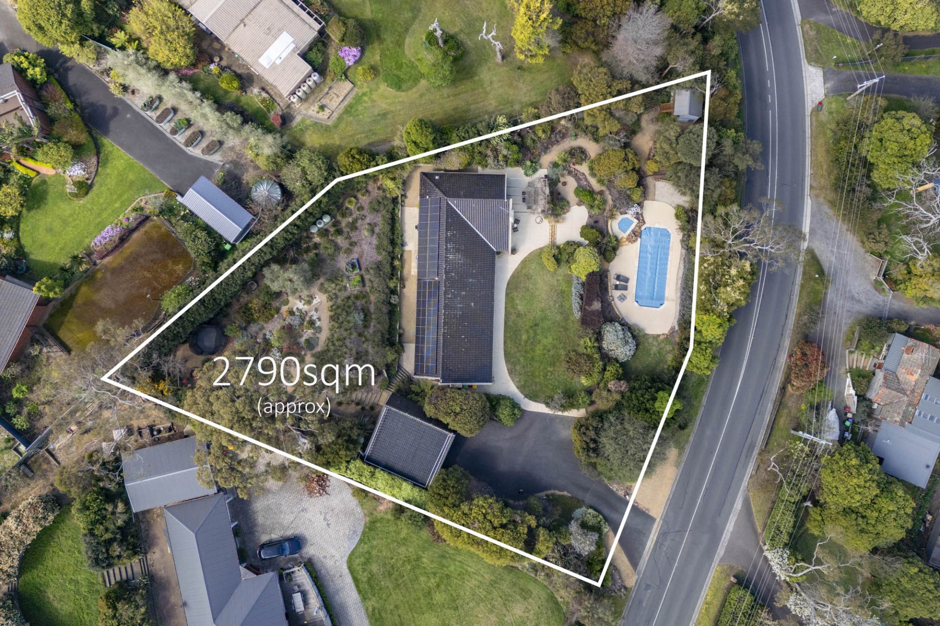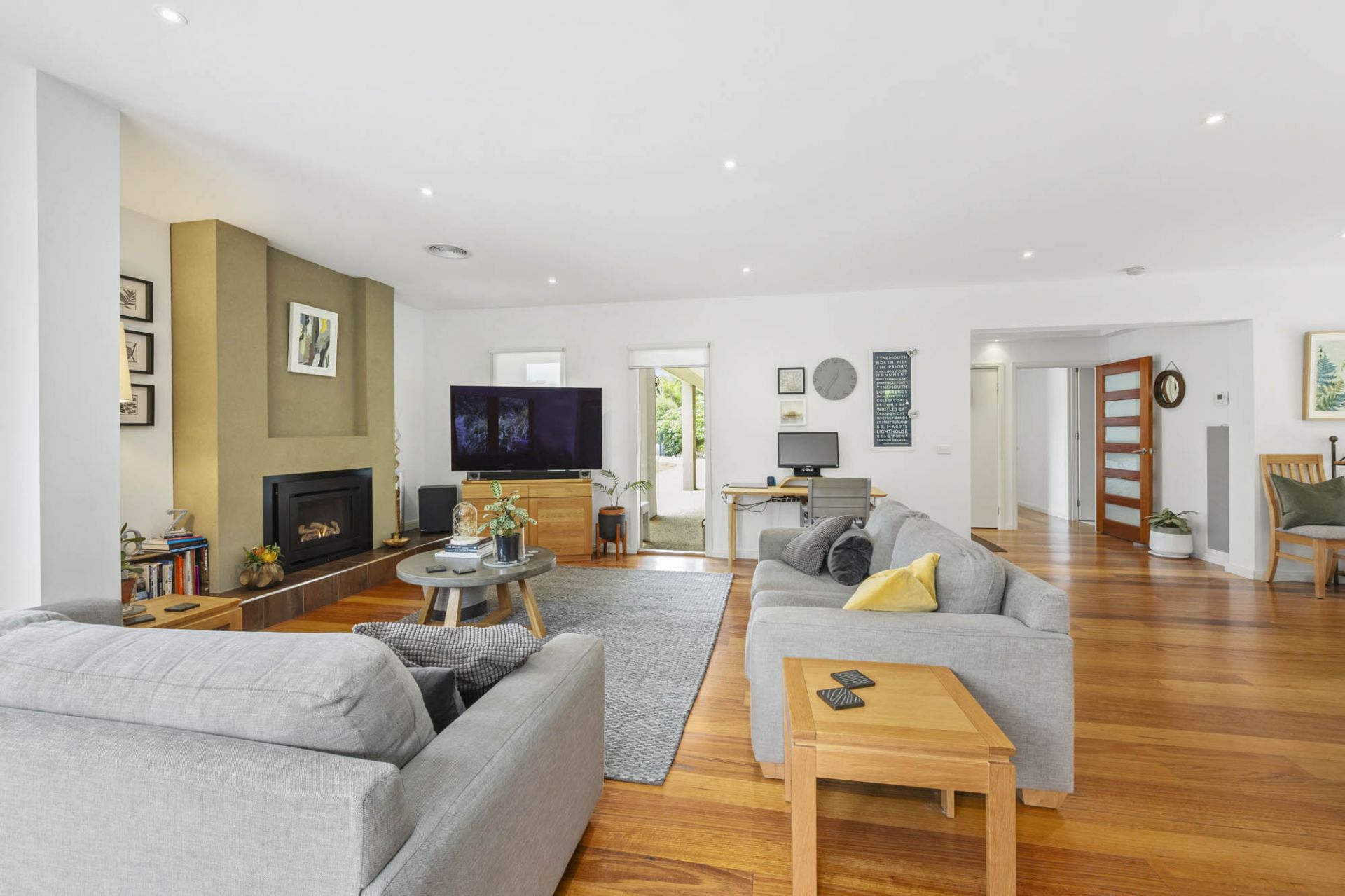 Rear gardens have steps leading up to a quaint firepit zone set at the highest point of the property where you can indulge in an evening red and enjoy a sensational panoramic vista over the peninsula's Moorooduc Plains that turn into a dazzling light show as day turn to dusk.
