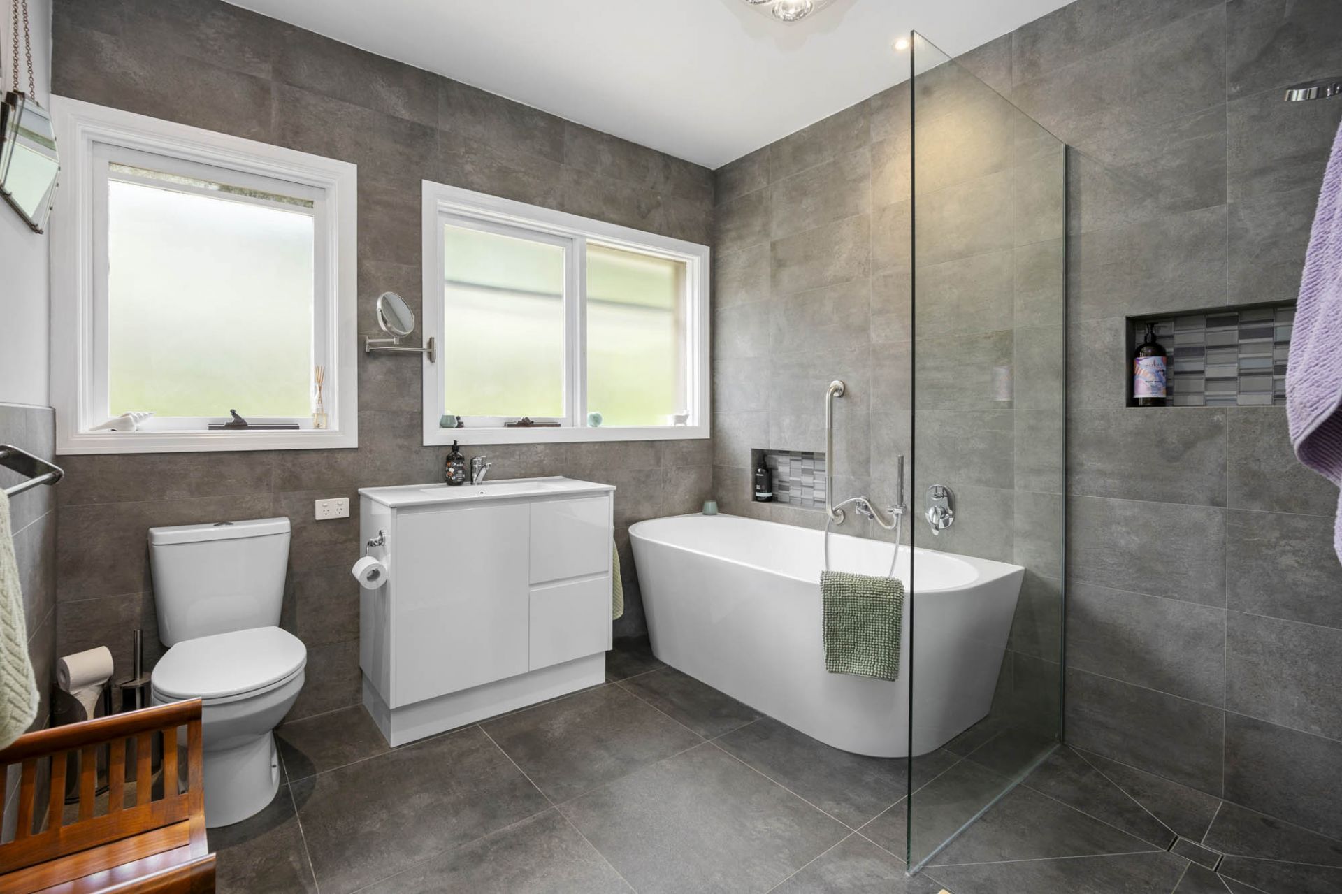 The 4 bedroom home also features a main bedroom ensuite, a family bathroom with walk-in shower and bathtub, a large double remote-controlled garage, security cameras and alarm system, extensive off-street parking, zoned ducted heating and refrigerated cooling, while 13.8kW solar panels keep household costs at a minimum.