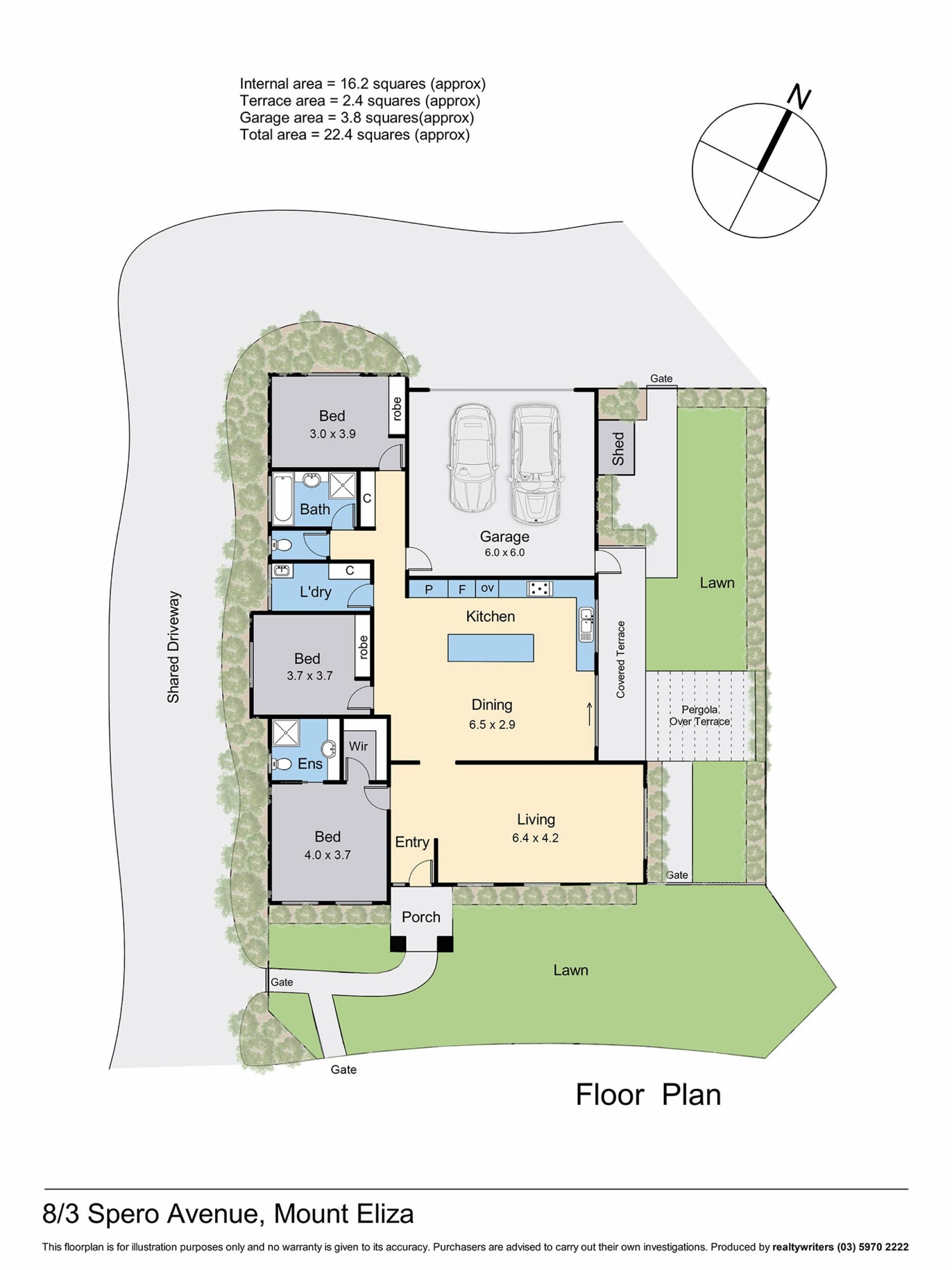 With internal access to a rear remote-controlled double garage that opens beside the kitchen so you can bring your groceries straight in, the home is fitted with brand new central heating and refrigerated cooling system, a new hot water service, new flooring and security system. Land Size: 393sqm (approx)