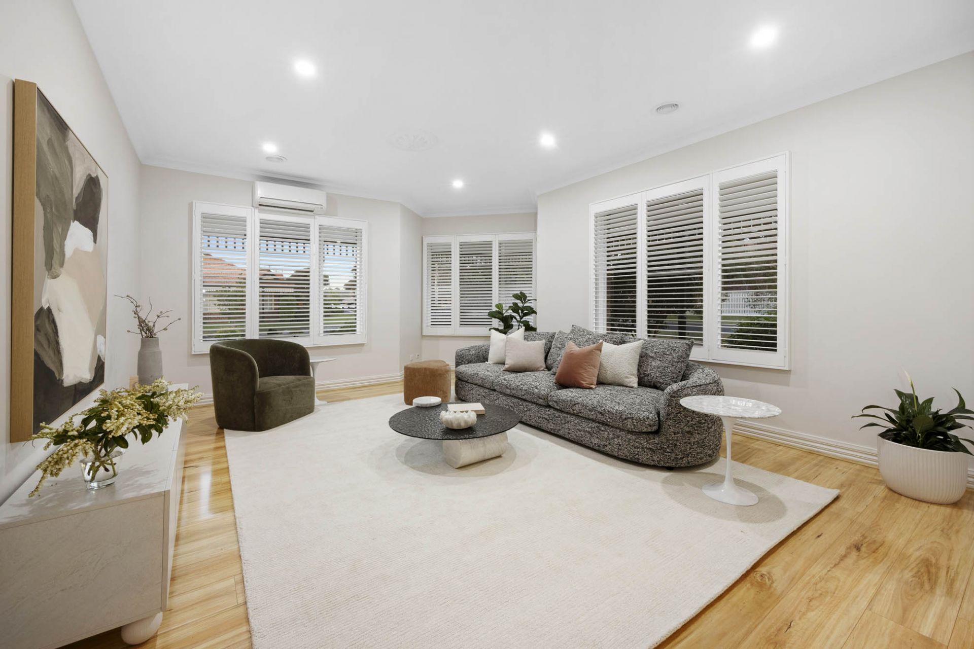 The main bedroom has a walk-in dressing area, 2 further bedrooms are serviced by a family bathroom with shower and bath, while a full laundry has direct access to the double remote-controlled garage completing a practical and well-considered floorplan.