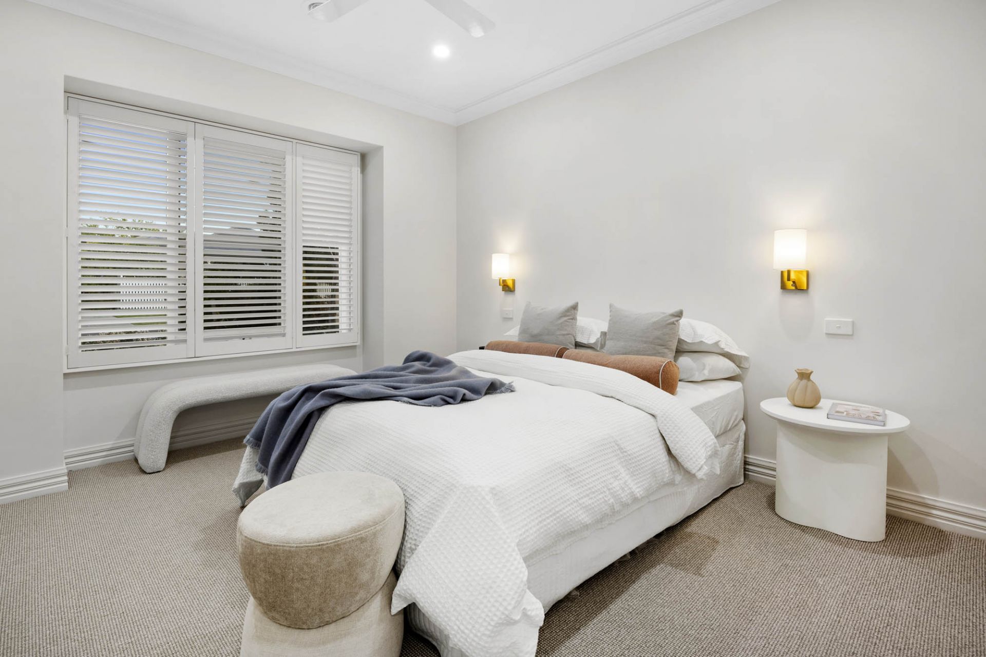 Plantation shutters and woodgrain floors create a refined coastal aesthetic in an impressive living area that gives space for the largest of lounge suites. The kitchen truly highlights the home's quality with expansive stone benchtops, ceramic cooktop and soft-close cabinetry, while an adjoining dining/family area has stacked sliding doors letting the room flow out to a sunny alfresco terrace with rose gardens leading to rear veggie gardens adding to the home's charm and liveability.