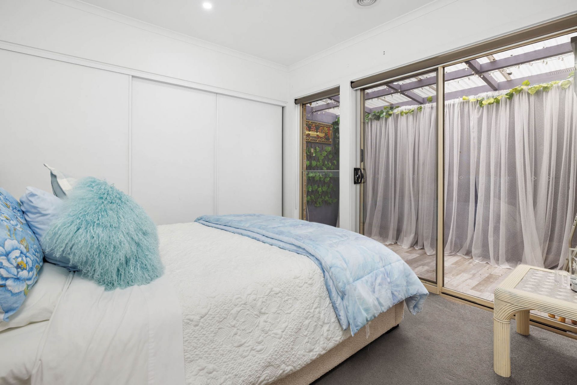 The main bedroom beside the front door features a walk-in robe and ensuite, a sunny second bedroom opens out to a small enclosed courtyard and the third bedroom has a glass sliding door directly onto the covered alfresco.