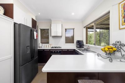 Stainless steel appliances adorn the kitchen including a gas cooktop, under bench oven and dishwasher, the meals area has room for a full size table and the generous lounge looks out to well-tended native gardens.