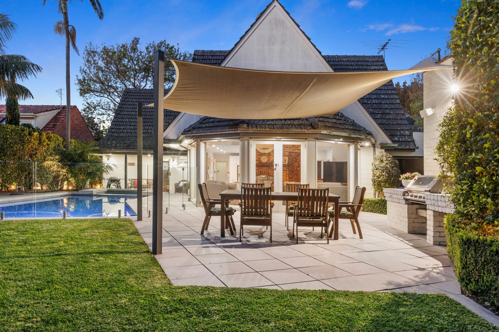 Inside, grand living areas provide extreme luxury featuring a large rumpus lounge flanked in glass with an elaborate two-way fireplace, double doors opening straight out to the BBQ terrace and a lovely outlook over the pool and gardens.