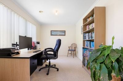 The main bedroom suite offers a restful retreat with double-door entry to a spacious ensuite and a walk-in robe, while the children's wing comprises 2 bright bedrooms, each with garden outlooks, and a family bathroom complete with a spa bath. A large study beside the entry is an ideal home office or could be used as a fourth bedroom if need be.