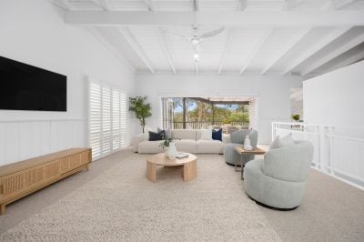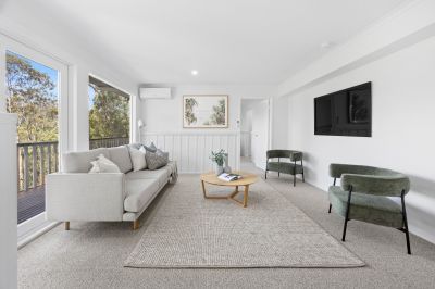 With high vaulted ceilings, beautiful engineered oak floors, plush wool carpet and a crisp white colour scheme all enhancing the abundant sense of space, the property also includes plantation shutters, reverse cycle heating and cooling on both levels, a double carport with rear storeroom and native gardens flowing down to the creek boundary on this large 1336 sqm (approx) allotment.