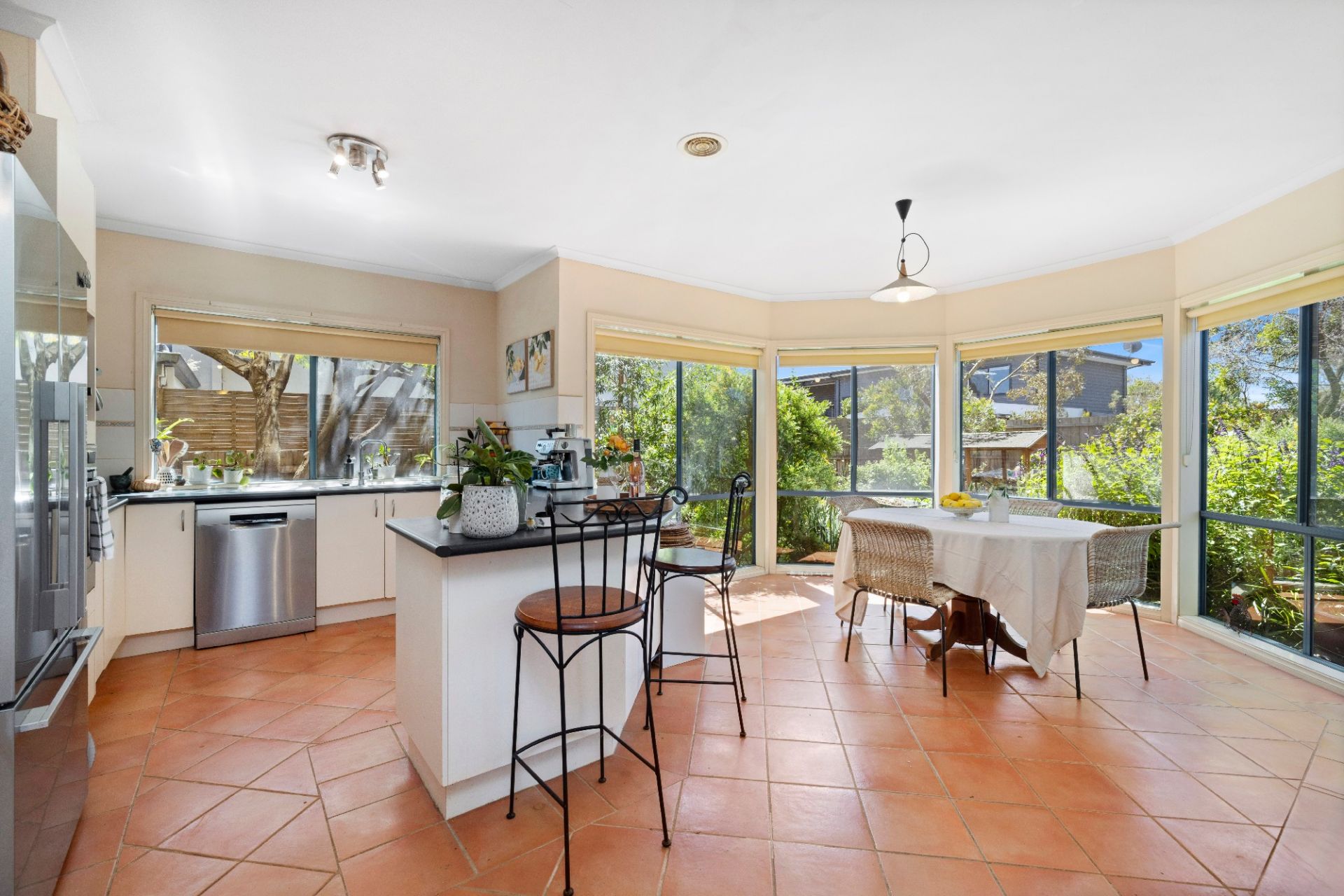 A central kitchen is set up for the serious cook with gas cooktop, wall oven and dishwasher all facing a large sunny meals and family area that performs well as the busy hub of the home.