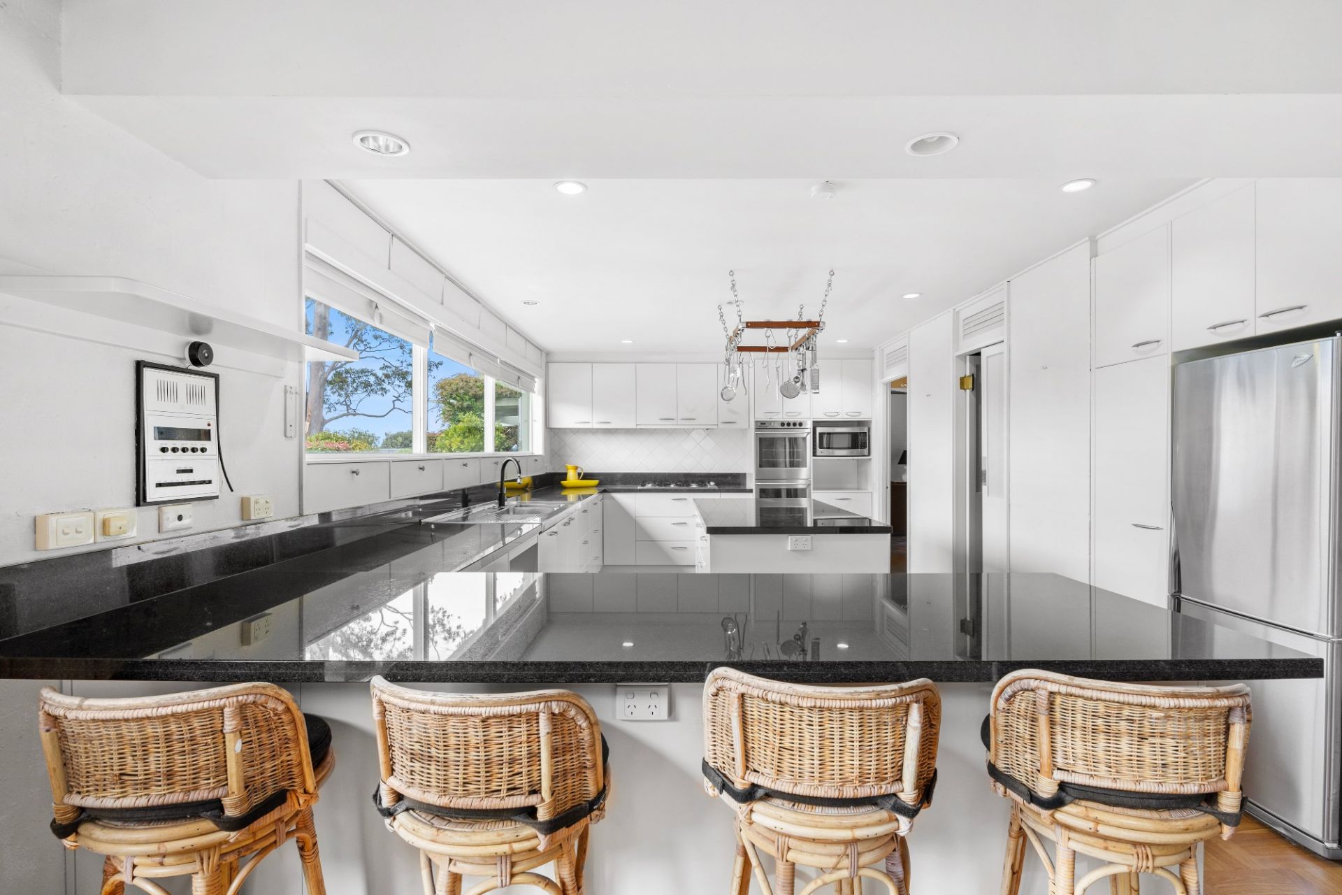 A large entertainer's kitchen rises to the occasion with expansive granite benchtops, a walk-in pantry, St George double oven and Smeg gas cooktop, forming a superb hub for hosting at scale.