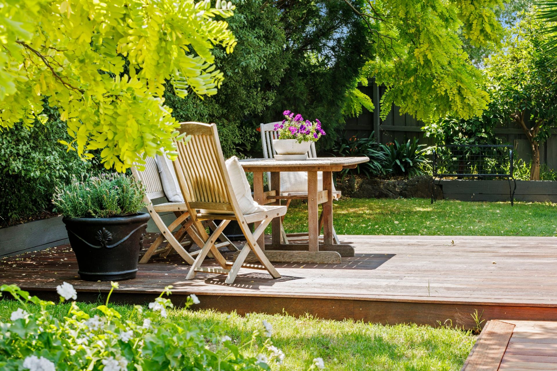 Sharing the spotlight, a sparkling new kitchen is both elegant and intelligent in its design with crisp white stone counters, sleek cabinetry, an induction cooktop, a sunny built-in dining area and discreet doors that reveal a cleverly integrated laundry that doubles as a walk-in pantry with direct garage access so you can bring your groceries in with ease. A dining hall has lovely connection to the enclosed alfresco lounge that flows out to a sun-splashed garden deck, providing a fabulous connection with the lush rear gardens.