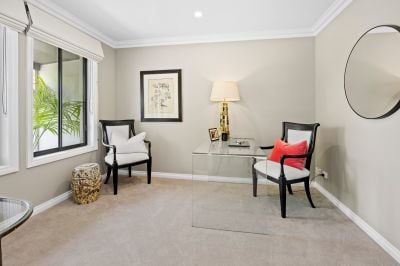 Set at the end of a leafy court within one of the estate's most peaceful enclaves, the home entices with a graceful Tudor-inspired façade, while inside provides a flowing floorplan filled with stylish living, dining and entertaining spaces where refined finishes and a beautifully curated colour palette create spaces of warmth, style and effortless liveability.