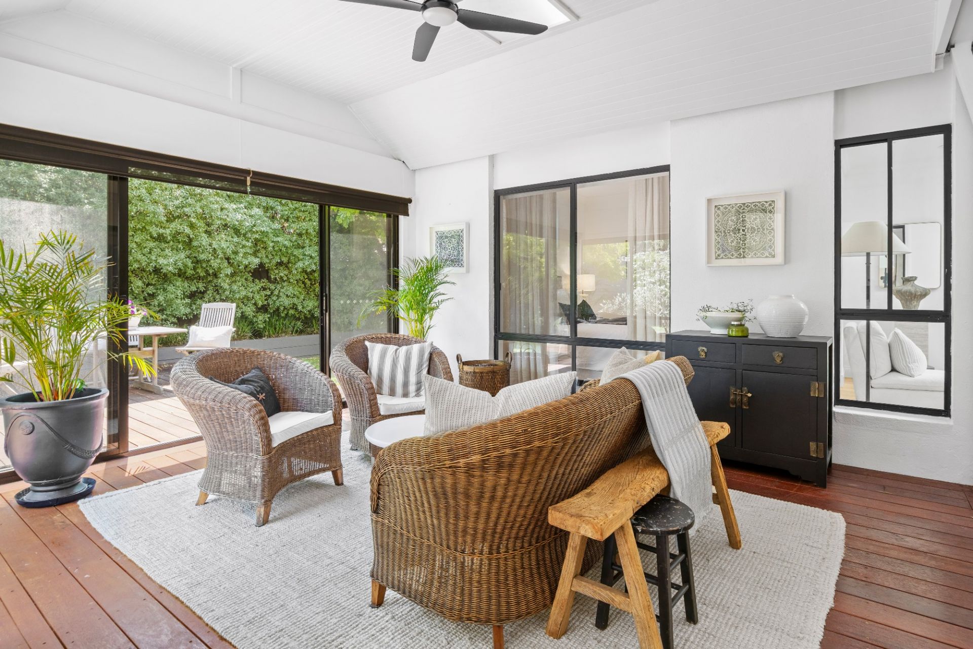 Wrapped around a conservatory-style alfresco lounge, the home provides 2 living areas including a sensational open lounge with a series of giant skylights that brilliantly illuminate the heart of the home. A second lounge is equally lovely with a serene outlook to verdant front gardens.