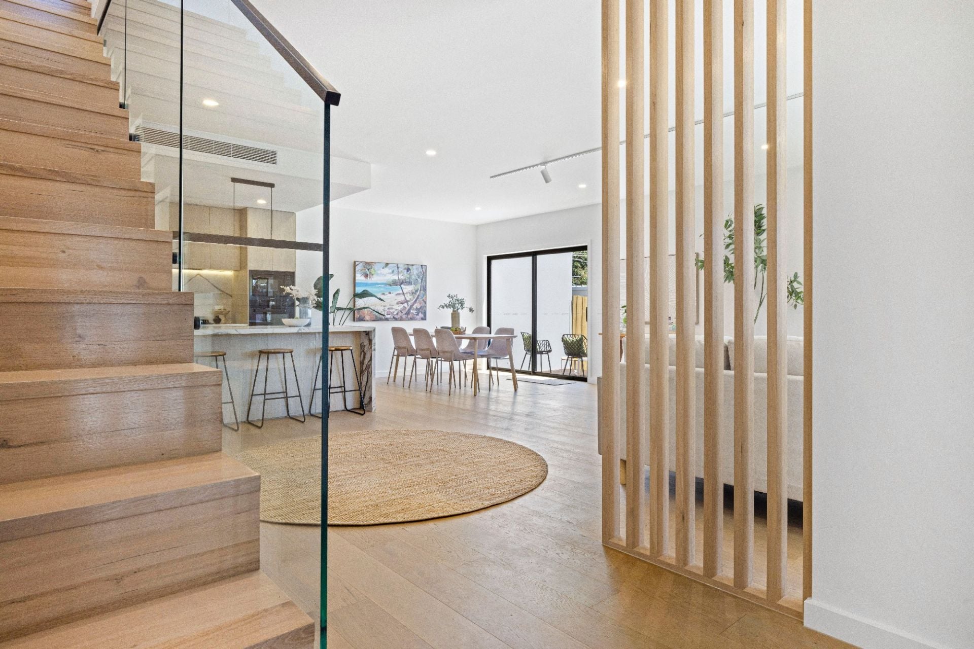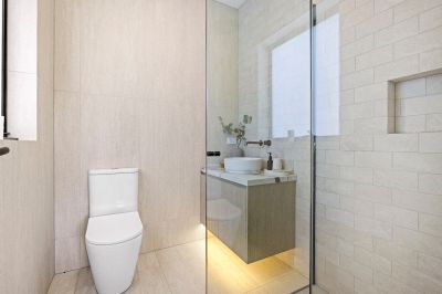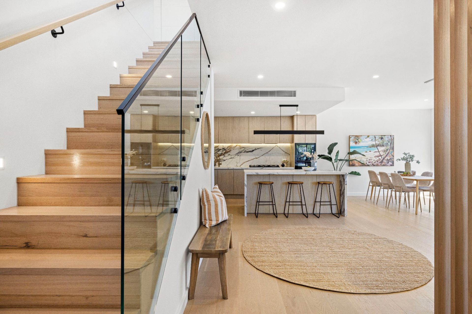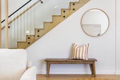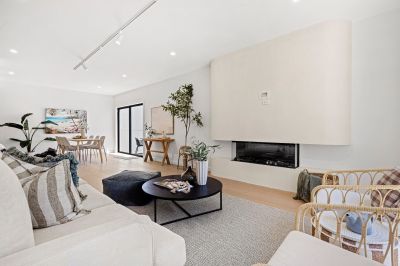 Commanding the front position of an exclusive trio and enjoying its own striking street frontage, the 4 bedroom home showcases a beautiful fusion of architectural influences and premium finishes. Soft curves, layered textures and a subtle coastal aesthetic come together to create a residence of distinctive character and contemporary flair.