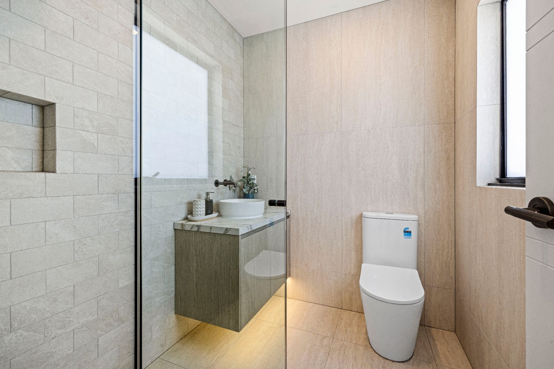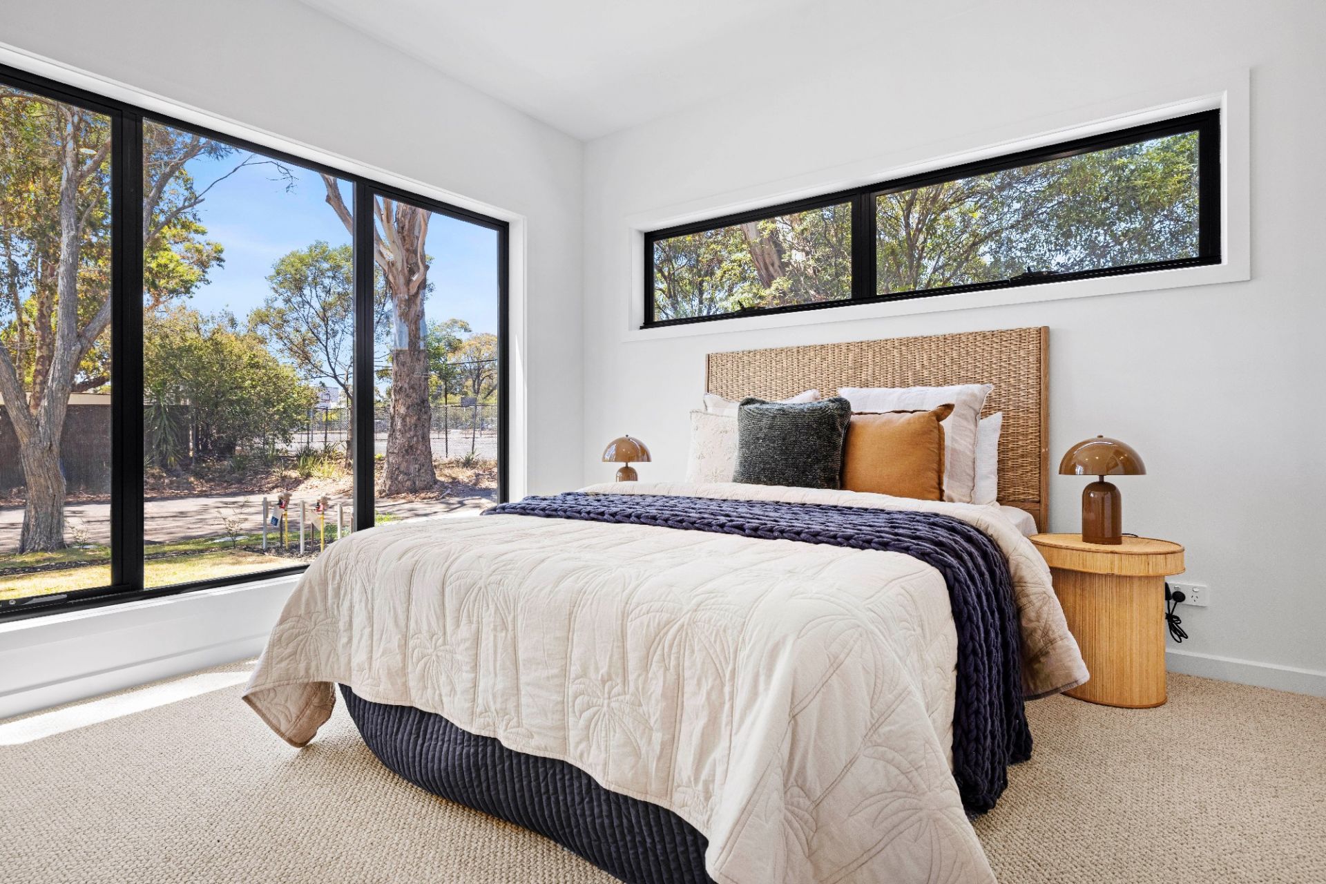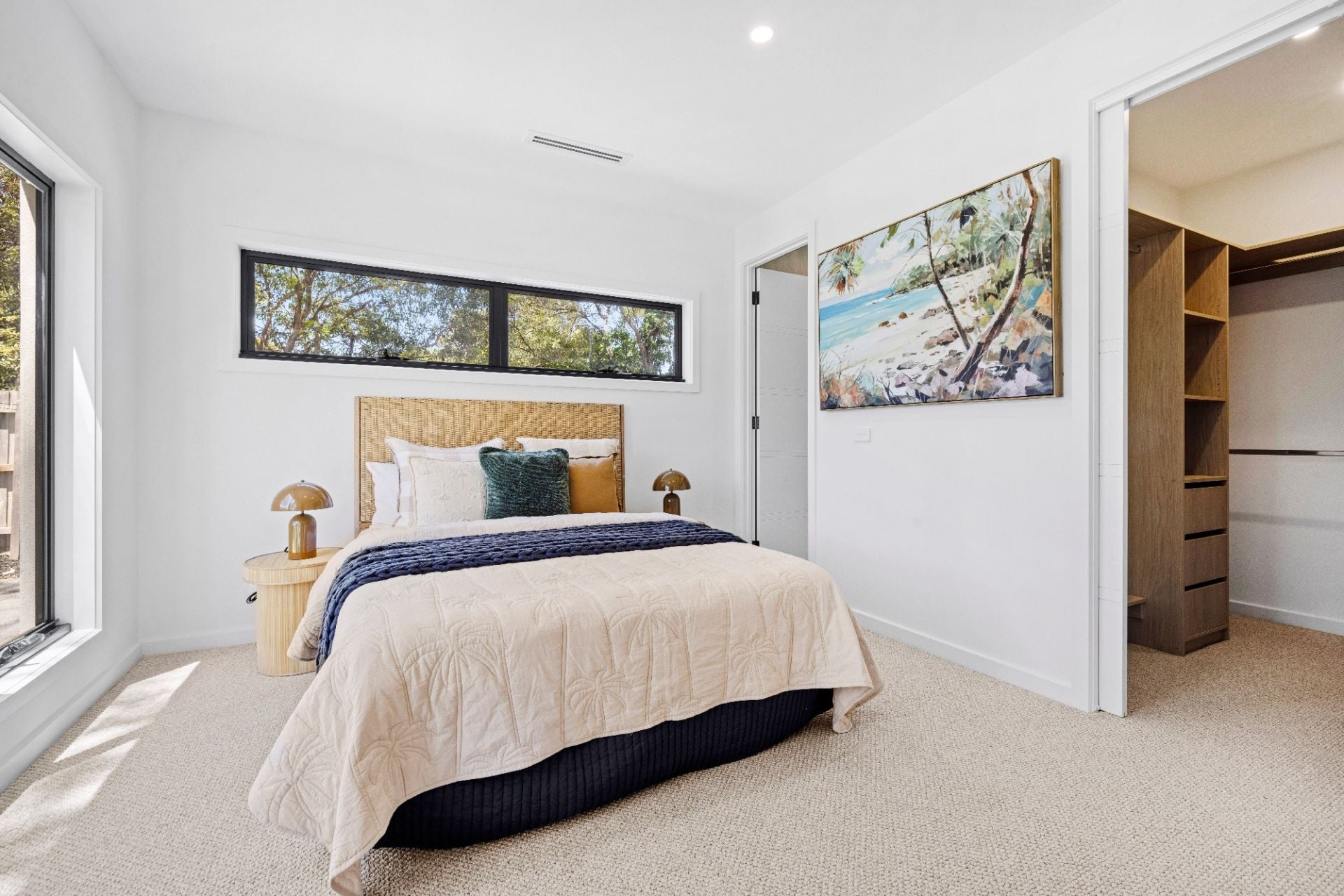 Commanding the front position of an exclusive trio and enjoying its own striking street frontage, the 4 bedroom home showcases a beautiful fusion of architectural influences and premium finishes. Soft curves, layered textures and a subtle coastal aesthetic come together to create a residence of distinctive character and contemporary flair.