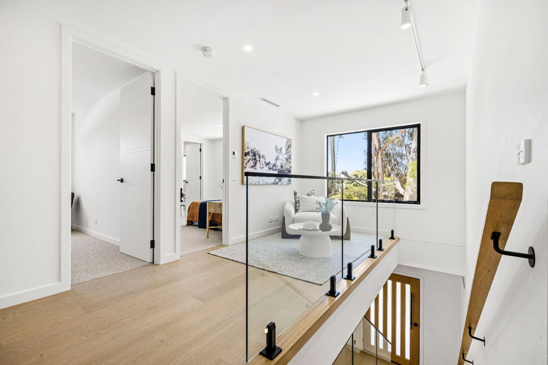 Upstairs, a second ensuited bedroom provides ideal accommodation for guests or older children, while 2 additional bedrooms enjoy leafy treetop outlooks and share a stylish family bathroom complete with shower and pod bath. A spacious landing or TV retreat adds further liveability.