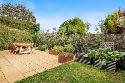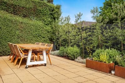 With olive trees, fragrant star jasmin and tall manicured hedges delivering elegance and a striking vertical garden backdrop, a lovely refurbishment introduces a fresh layer of contemporary elegance, including a superb new kitchen, sleek ensuite and laundry, along with new paintwork and tailored window furnishings.