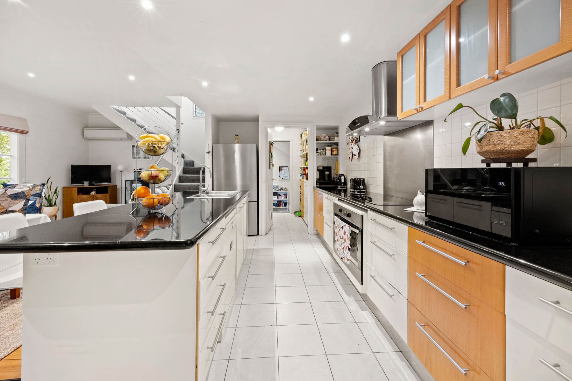 At its heart, a welcoming lounge retains the charm of the home's heritage, while beyond, an impressive contemporary kitchen anchors the main living domain with striking granite benchtops, a ceramic cooktop, oven, Miele dishwasher and a walk-in pantry.